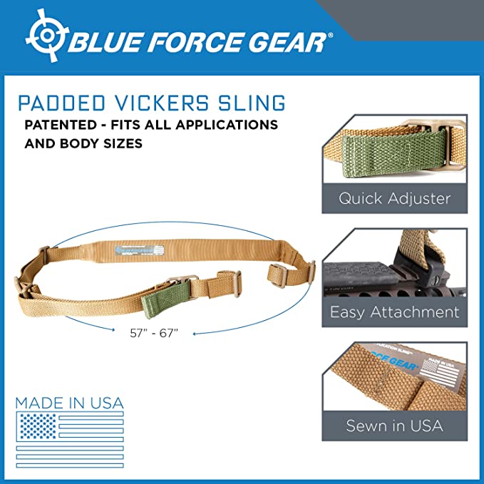 - ADJUSTS IN SECONDS - Our VCAS Sling is manufactured by BFG with a design inspired by Larry Vickers’ years of experience in 1st SFOD. Our Vickers Sling instantly adjusts to accommodate carrying positions.