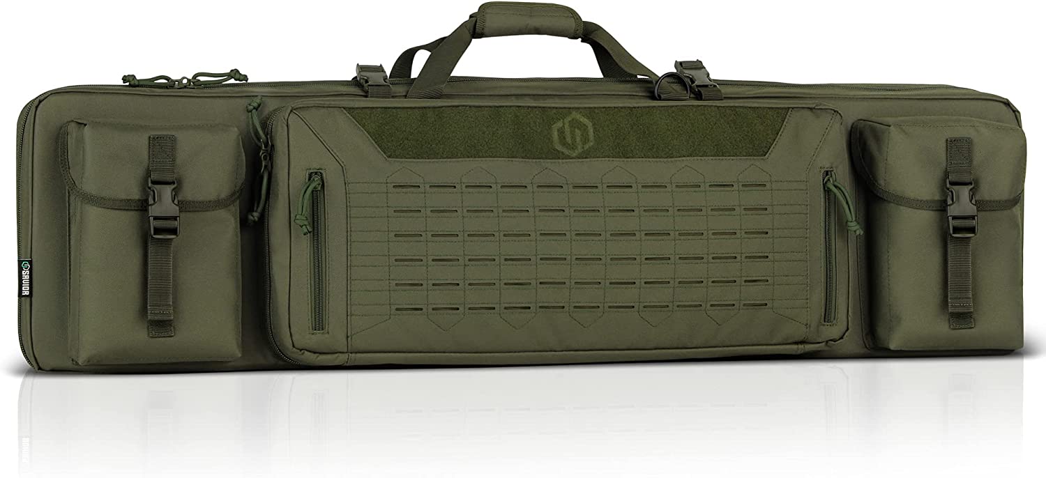 - [ULTRA SPACIOUS & SAFE] - Holds 2 Rifles & 2 Pistols w/ Additional Pocket Compartments. Lockable Zipper Sliders on Both Firearm Compartments.